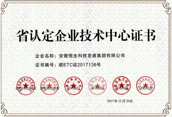 恒生集團企業研發中心被認定為安徽省第26批省認定企業技術中心